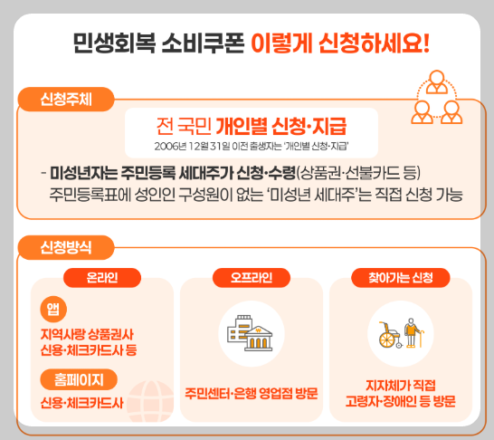 민생회복 소비쿠폰은 온라인과 오프라인 모두에서 신청할 수 있습니다.