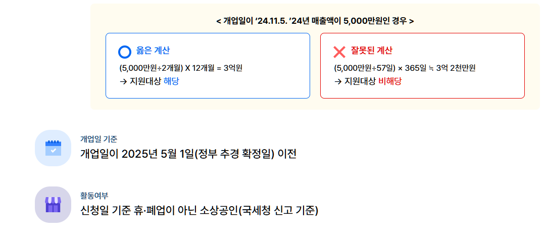 먼저, 조건이 까다롭지는 않지만 연매출 기준과 사업자등록일 요건을 반드시 충족해야 합니다.