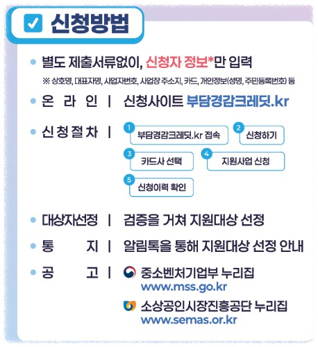 조건이 맞는다면 복잡한 절차 없이 손쉽게 신청할 수 있고, 적절히 활용하면 한 해 동안의 사업 유지에 큰 보탬이 될 수 있습니다.
