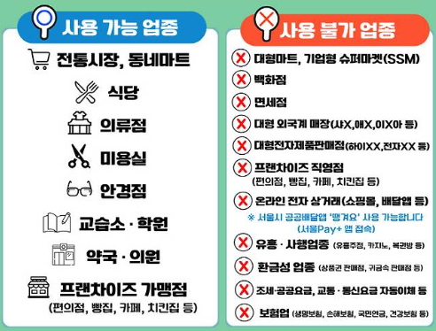 2. 서울사랑상품권, 사용처