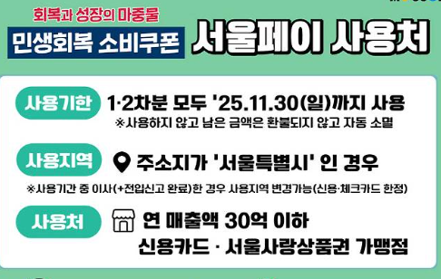 서울시는 이번 소비쿠폰 정책의 실효성을 높이기 위해, 서울사랑상품권 가맹점을 2배 수준으로 늘렸습니다. 기존의 24만 개 가맹점 외에도 연 매출 30억 원 이하의 신용결제 사용 매장 24만 개가 자동으로 등록되어 총 48만 개로 확장됩니다.