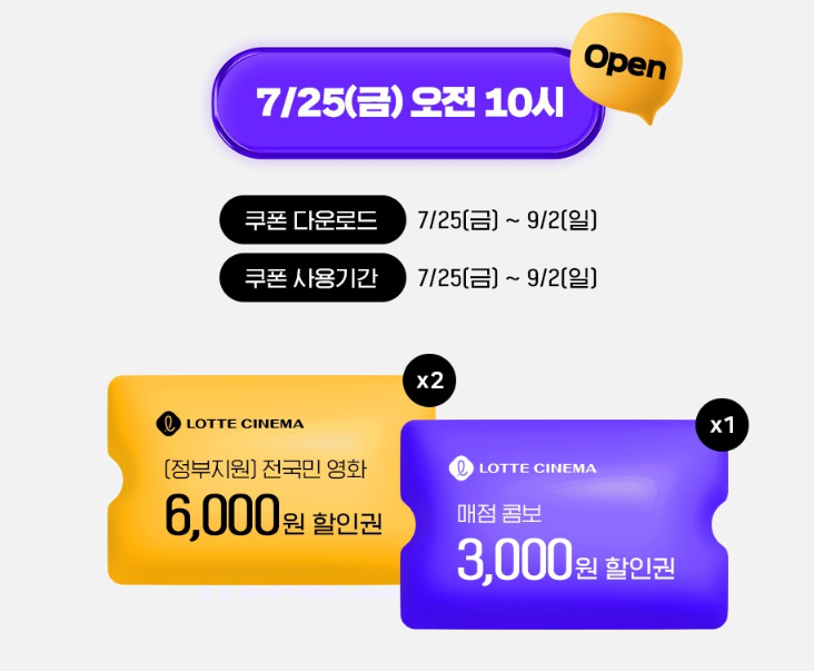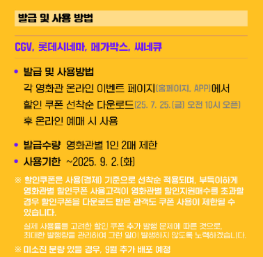 영화 6000원 할인권은 2025년 7월 25일 오전 10시부터 전국적으로 배포가 시작됩니다.