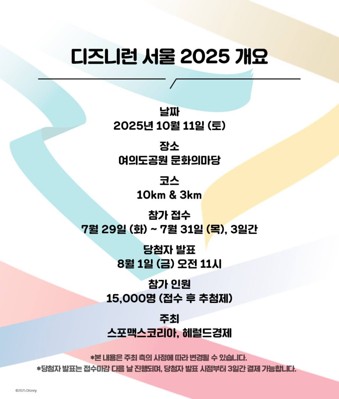 디즈니런 서울 2025 참가 신청은 7월 29일(월)부터 3일간, 디즈니런 공식 홈페이지에서 가능합니다.