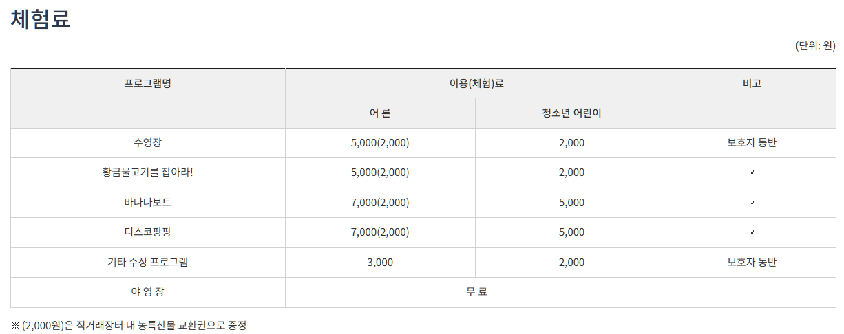 3. 체험 프로그램 구성 및 체험료 안내