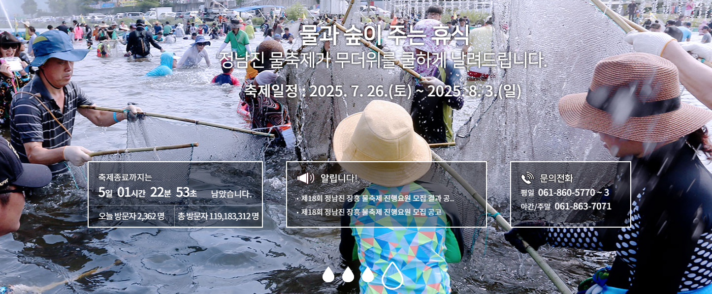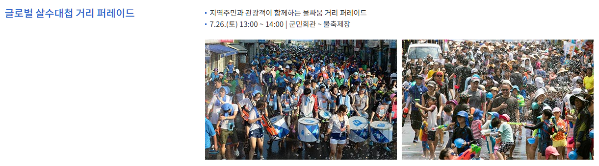 한여름 무더위를 시원하게 날려줄 대표 축제를 찾고 계신다면, 정남진 장흥 물축제를 추천드립니다.