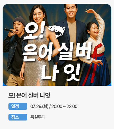 개막식은 7월 26일 오후 1시에 열리며, 퍼레이드와 함께 공식 축제가 시작됩니다. 이후 매일 저녁에는 댄스, 트로트, DJ EDM 등 다양한 장르의 공연이 준비되어 있어 분위기를 더욱 끌어올립니다.