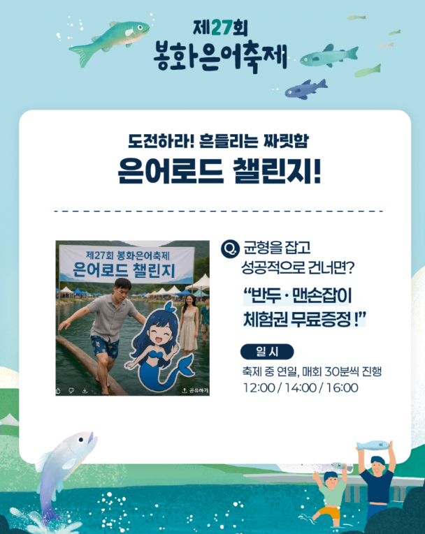봉화 은어축제는 단순히 공연이나 먹거리 중심의 축제가 아닙니다. 진짜 하이라이트는 바로 ‘은어 잡기 체험’입니다. 내성천에서 직접 은어를 맨손으로 잡아보는 이 체험은 남녀노소 누구나 좋아하며, 아이들에게는 잊지 못할 자연 학습의 장이 됩니다. 잡은 은어는 현장에서 바로 숯불에 구워 먹을 수 있어 신선함과 재미를 동시에 누릴 수 있습니다.