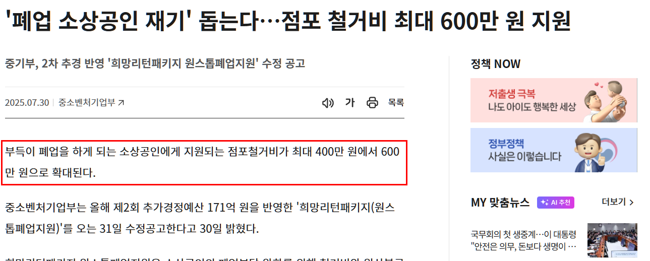 2025년 2차 추경예산 반영으로 소상공인 폐업철거지원금은 많은 변화가 있었습니다. 가장 큰 변화는 지원금 한도가 400만 원에서 600만 원으로 50%가량 인상되었다는 점입니다.