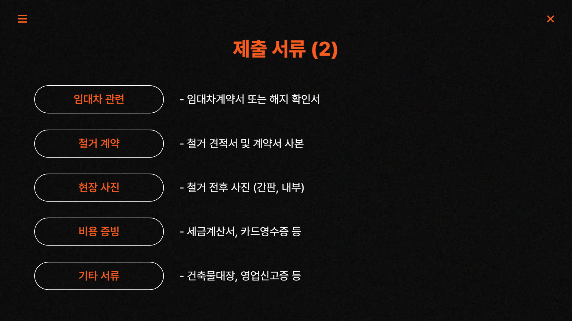 더불어 점포 원상복구를 위한 청소비와 폐기물 처리 비용도 지원 대상에 들어갑니다. 단, 폐업 후 점포 임대인이 요구하는 원상복구 조건에 맞는 비용이어야 하며, 견적서와 계약서 제출을 통해 지원 범위를 확인합니다.