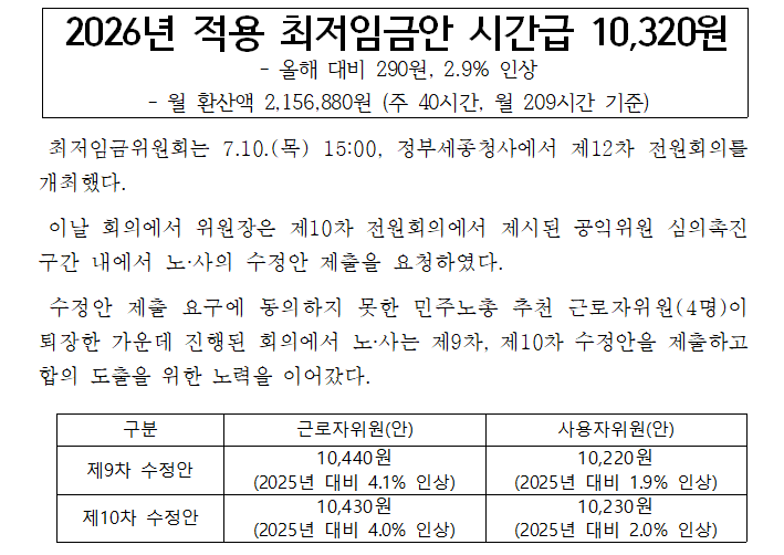 1. 2026년 최저임금 확정, 10,320원으로 결정된 이유