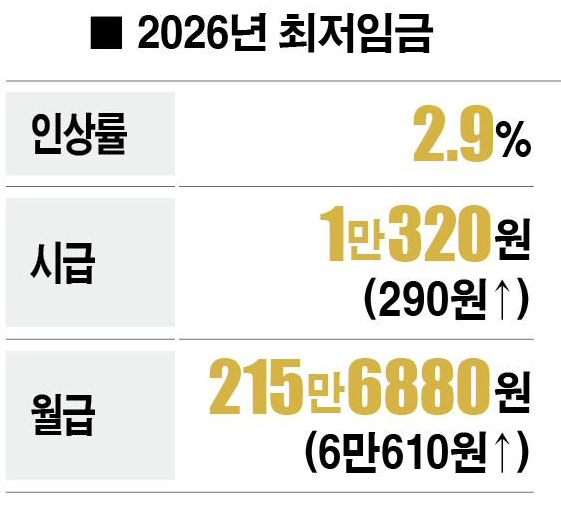 2026년에 적용되는 최저임금은 시급 기준으로 10,320원으로 결정되었습니다. 이는 2025년 대비 290원 인상된 수치이며, 인상률로는 약 2.9%입니다.